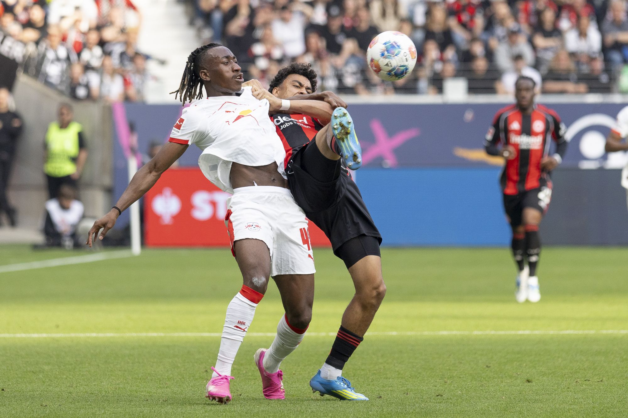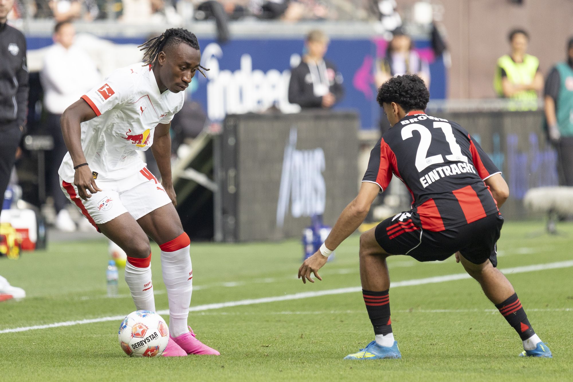 In der 70. Minute fiel schließlich die verdiente Führung für Leipzig: Antonio Nusa zog aus der Distanz ab, Frankfurts Keeper Zetterer sah dabei unglücklich aus und ließ den Ball zum 1:2 passieren.