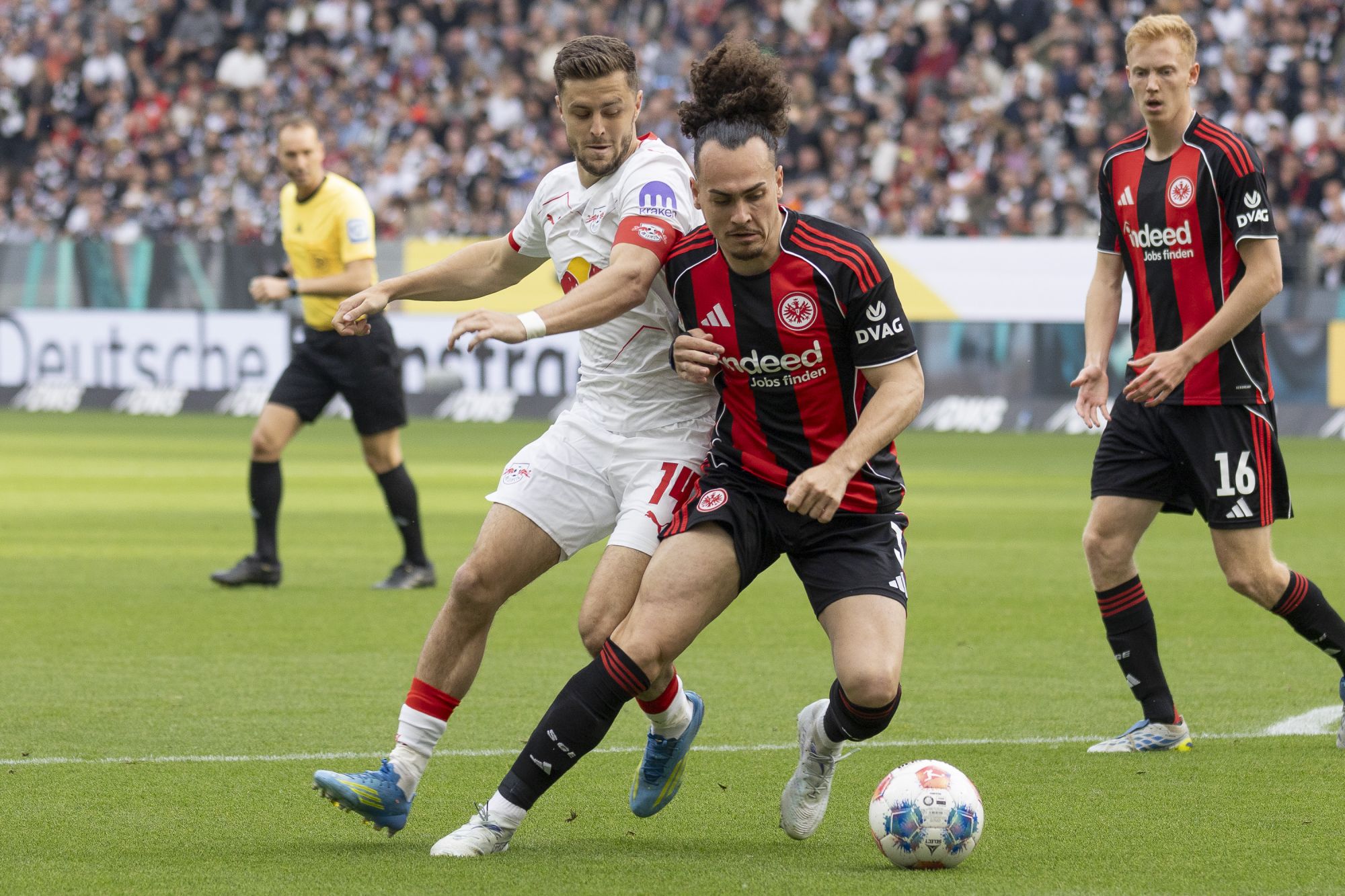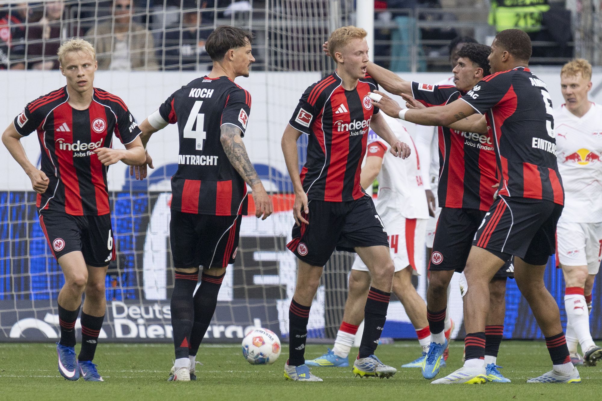 Zu Beginn hatte Leipzig mehr Ballbesitz verzeichnet, während Frankfurt defensiv stabil stehen wollte. Die erste große Chance gehörte jedoch den Gastgebern, als Jonathan Burkardt früh prüfte – Leipzig-Keeper Maarten Vandevoordt reagierte sicher.